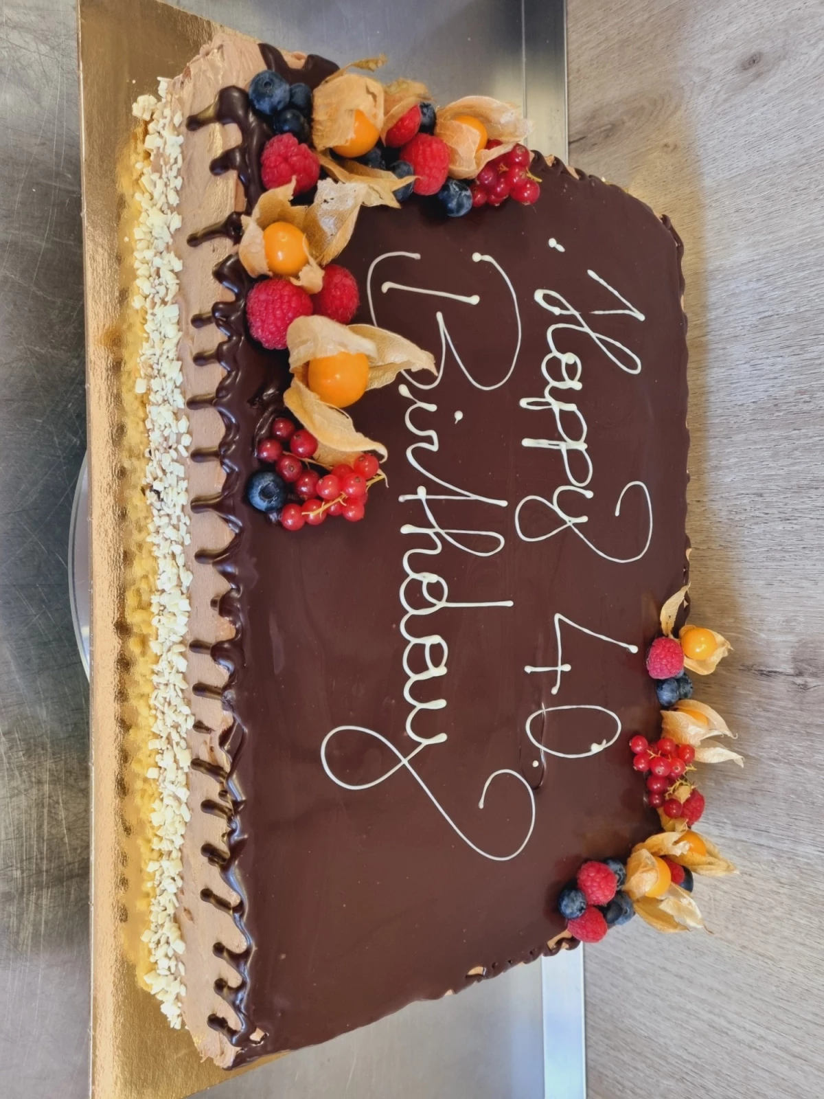 Wir passen die Schriftart und das Material automatisch an die bestellte Torte an.